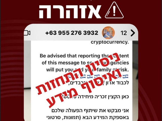 Национальное управление кибербезопасности предупреждает израильтян о том, что сообщения, рассылаемые в последние часы через WhatsApp якобы от Службы тылом, являются фейковыми и их цель – оказание психологического давления.