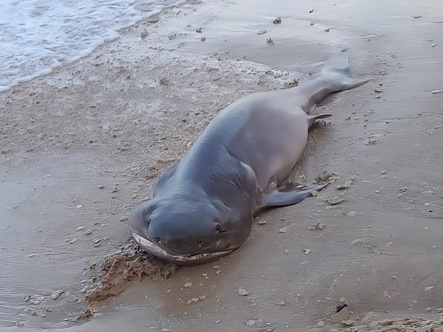 На пляже Шошанат а-Амаким утром 29 января была найдена туша крупной акулы, редкого для израильских берегов вида – серой шестижаберной акулы (Hexanchus griseus).