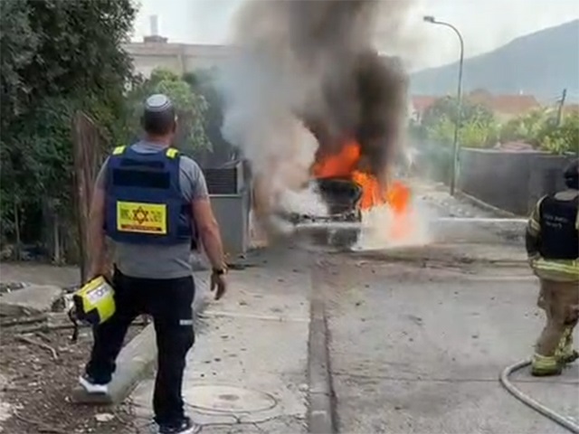 Жители Кирьят-Шмоны слышали несколько взрывов после сигнала тревоги. Из пожарной службы сообщили, что обломок ракеты привел к возгоранию легкового автомобиля.