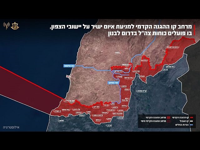 Пресс-служба ЦАХАЛа сообщила о публикации данных о районе линии передовой обороны, в пределах которой израильские силы действуют на юге Ливана с целью не допустить прямой угрозы населенным пунктам севера Израиля.