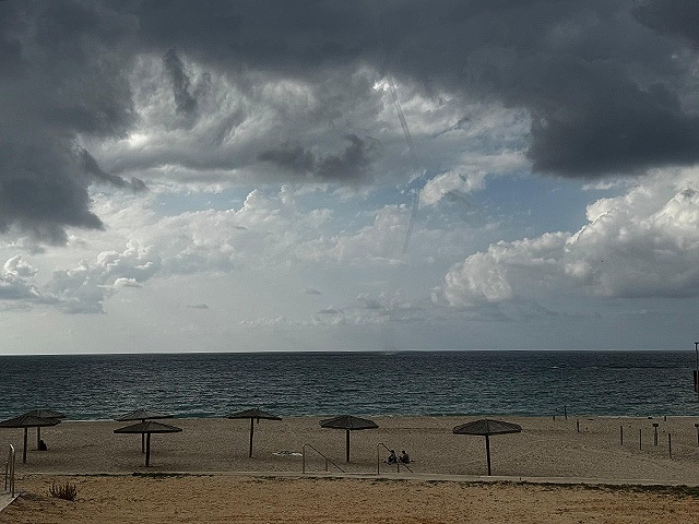 Во второй половине дня 13 ноября в центральной части израильского побережья Средиземного моря в районе Пальмахим можно было наблюдать водяной смерч.