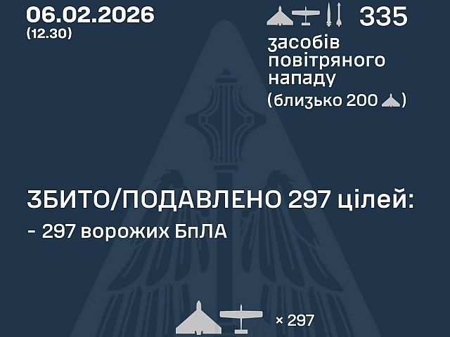 Ночью 6 февраля российские военные выпустили по Украине две аэробаллистические ракеты «Кинжал» и пять управляемых авиационных ракет Х-59/69 и 328 БПЛА-камикадзе и беспилотников других типов.