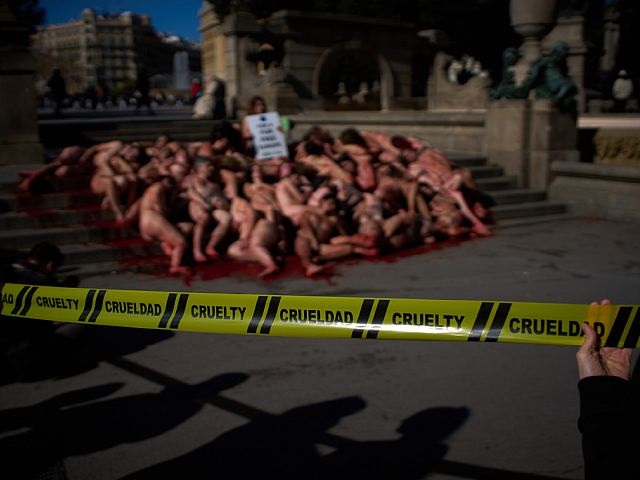 В центре Барселоны 8 февраля прошла резонансная акция против использования шкур животных в модной индустрии: участники легли на землю на площади Каталонии, многие были обнажены и облиты красной краской, имитирующей кровь.